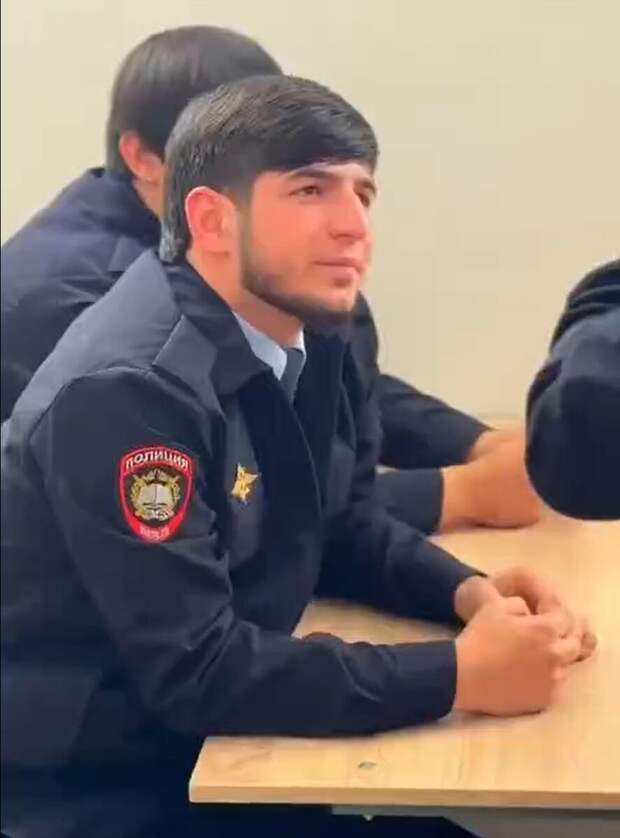 «Курсант Аушев, курсант Межоев, курсант Бузуртанова, Пугоев…», ― перечисляет своих одногруппников интервьюер с бородой и в форме МВД.
