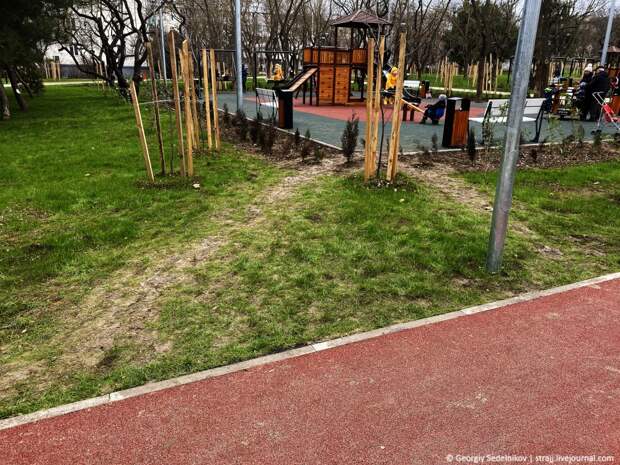 Но, к сожалению у нас народ не приучен жить в цивилизации, возможно это отголоски украинской деградации. меня возмутило то, что невоспитанные взрослые и их детишки уже за неделю вытоптали газон и в некоторых местах организовали тропинки. Это настоящее быдлятство и неуважение к городу и к тем людям которые старались и делали красоту в нашем городе. Неужели так трудно ходить по дорожкам, надо переть по грязи и потом её разносить по плитке и вытаптывать газон чтобы было как раньше и жить в говне.