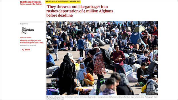 "Иран спешит с депортацией 4 млн афганцев раньше установленного срока". Скриншот страницы сайта theguardian.com