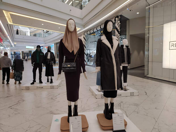 Или с мужем в шесть вечера за покупками. Но не одна. Между прочим, одежды, как на этих манекенах, я на чеченках не видела - очень короткие юбки. Носят там уже юбки в пол в основном. Кстати, в этом торговом центре много манекенов в белье. И ходят кругами мужчины. Но я так и не рискнула снять