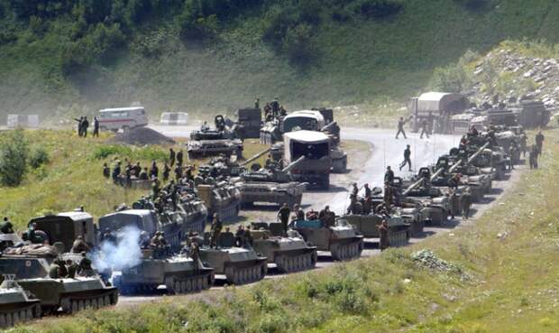 На фото: колонна российской бронетехники направляется в столицу Южной Осетии Цхинвали, где-то в самопровозглашенном грузинском регионе Южная Осетия, 2008 год. (Фото: Musa Sadulayev/AP/TASS)