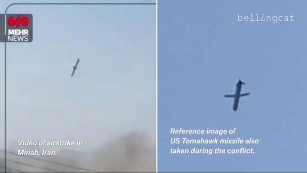 Новые видеокадры показывают, как 28 февраля американская ракета Tomahawk поразила объект Корпуса стражей исламской революции в Минабе, Иран, подтверждая, что удар был нанесен недалеко от школы для девочек, где, по сообщениям, погибли 175 человек.