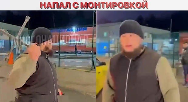 Откуда не возьмись появился вот этот кадр с монтировкой, а следом ещё целая группа "братьев", которые без всякого разбора попытались наброситься не только на таксиста, но и на пассажира.