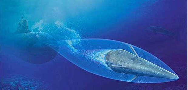 В воде развить такую скорость непросто: мешает сопротивление среды — под водой оно примерно в 1000 раз больше, чем в воздухе. Для разгона и поддержания столь большой скорости торпеде требуется огромная тяга, ее нельзя получить от обычных двигателей и реализовать с помощью гребных винтов. Поэтому в качестве движителей в «Посейдоне» используется что-то типа ракетных ускорителей. 100 тонная махина несется в толще в воды в газовом пузыре – в каверне. Это так называемый эффект кавитации, который создает сама торпеда. При этом гидродинамическое сопротивление движению значительно уменьшается. Т.е. чудовищную ракетную тягу под водой даёт этот «сверхмалый ядерный двигатель».